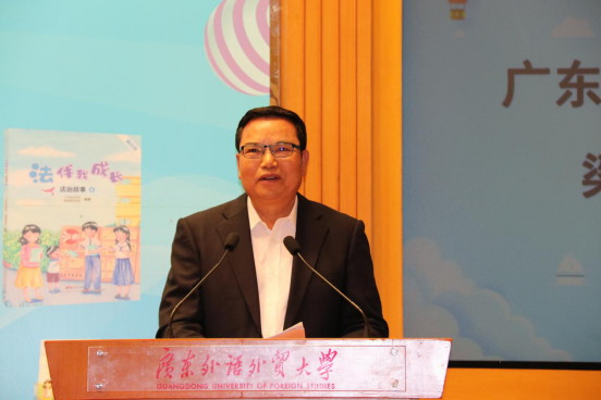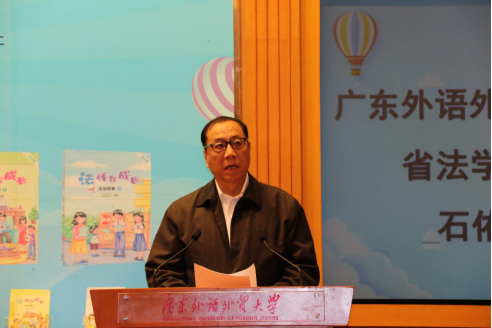 12月1日下午,由广东省法学会、珠海市法学会和广东教育出版社联合举办的“纪念国家宪法日暨《法伴我成长》丛书首发式”在广东外语外贸大学举行。中国法学会副会长张苏军,广东省法学会会长梁伟发,广东外语外贸大学校长石佑启,广东省法学会常务副会长陈文敏,广东省法学会副会长何桂复,广东省委政法委专职委员刘永庆,省委政法委二级巡视员、省法学会副会长兼专职秘书长姜滨,广东教育出版社副总编辑卞晓琰等出席此次活动。