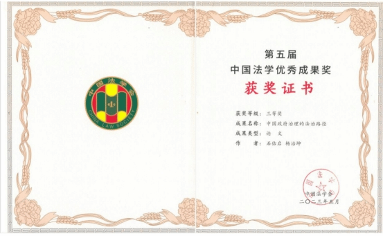 2023年5月19日,第五届中国法学优秀成果奖表彰会在北京举行。广东外语外贸大学石佑启书记、广东法治研究院副院长杨治坤教授的合作论文《中国政府治理的法治路径》荣获三等奖,广东法治研究院副院长杨治坤教授参加了此次表彰会。