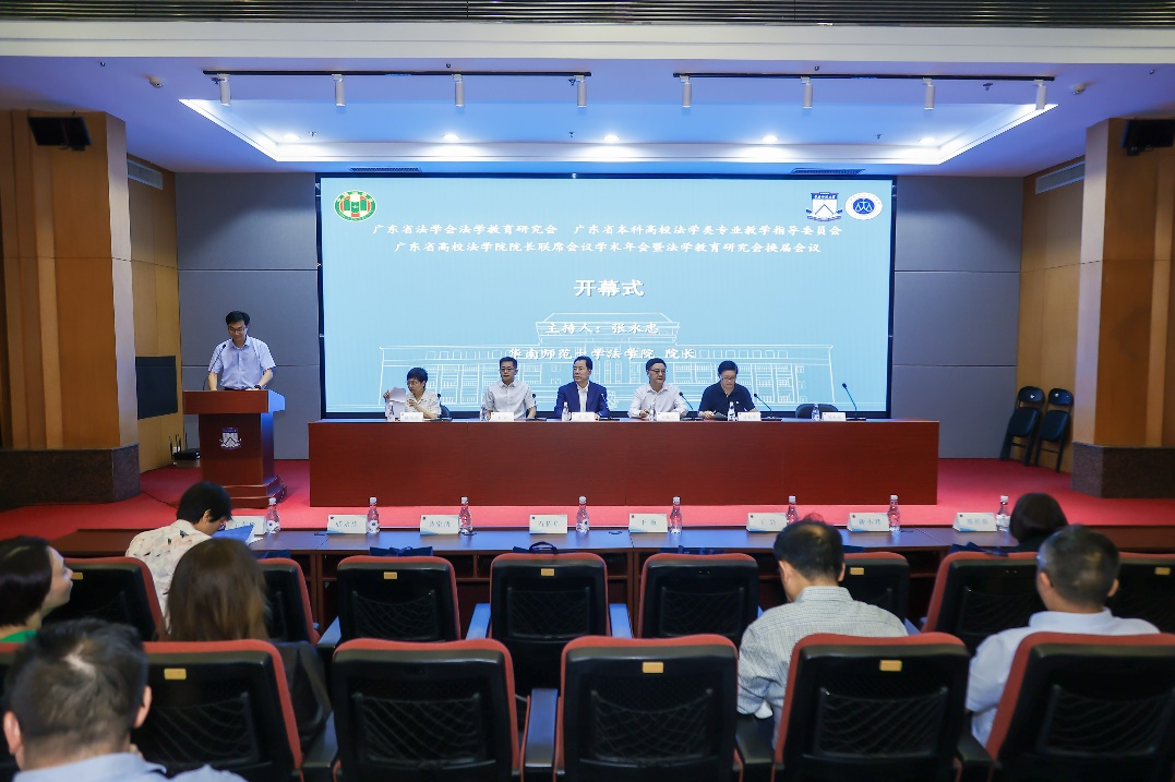 开幕式由华南师范大学法学院院长张永忠主持。首先由华南师范大学党委常委、副书记王岩致开幕词。王岩对到会人员表示热烈欢迎,感谢广东省法学会法学教育研究会对华南师范大学法学院的信任与支持,希望利用这次学习交流机会,共同探讨习近平法治思想概论课程建设、法治人才培养机制创新和粤港澳大湾区法学教育与人才培养等问题,办好人民满意的法学教育。同时,王岩还介绍了近年来华南师范大学法学院的发展情况和取得的阶段性成果,并向关心学院法学学科建设发展的各界领导、行业同仁表示衷心的感谢。