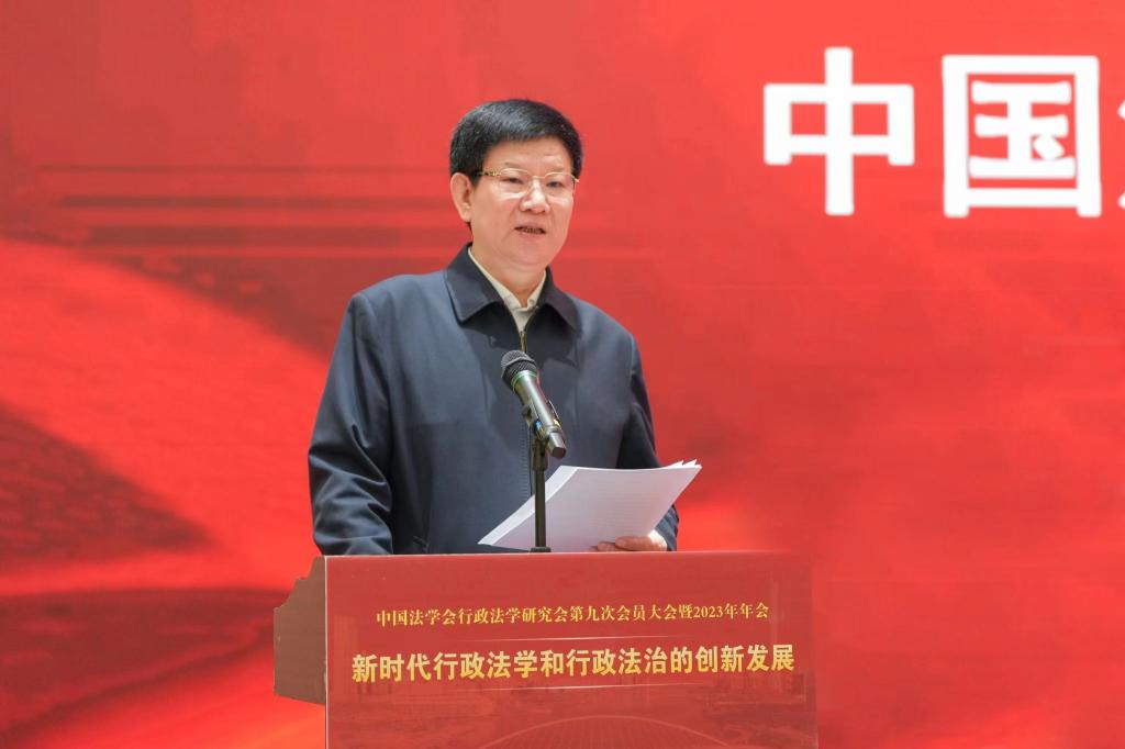今天,中国法学会行政法学研究会第九次会员大会暨2023年年会在美丽的羊城广州隆重召开,这是法学界的一次盛会,更是行政法理论界和实务界的一件盛事。在此,我谨代表中国法学会向会议的召开表示热烈祝贺,向与会的专家学者致以诚挚问候,向长期关心支持行政法学研究会发展的同仁表达衷心感谢!