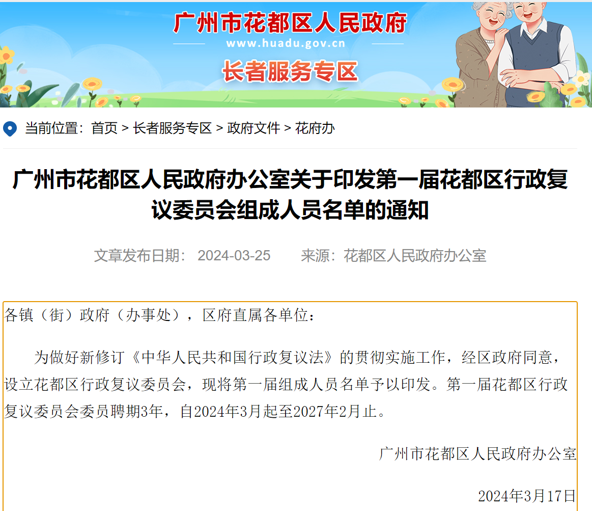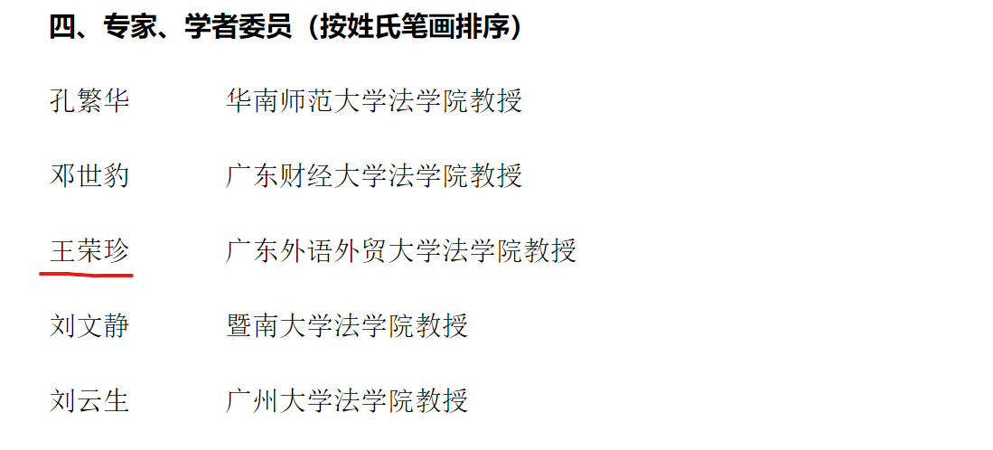 为贯彻落实新修订的《中华人民共和国行政复议法》,进一步完善行政复议工作机制,发挥专家、学者在行政复议工作中的作用,切实推动行政复议工作高质量发展,2024年3月17日,广州市花都区人民政府办公室公布第一届花都区行政复议委员会组成人员名单,聘期3年,自2024年3月起至2027年2月止。其中,我院王荣珍教授被聘为学者委员。