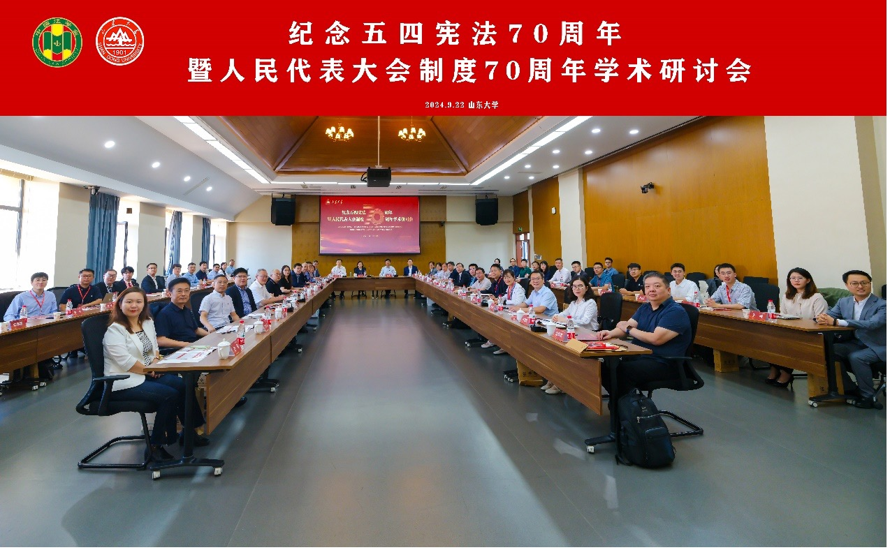 为深入学习贯彻习近平总书记在庆祝全国人民代表大会成立70周年大会上的重要讲话精神,迎接新中国成立75周年,纪念五四宪法颁布70周年、人民代表大会制度建立70周年,中国法学会宪法学研究会、中国人民大学公法研究中心、中国社会科学院法学研究所、北京大学宪法实施研究中心、中国社会科学院大学法学院、山东大学法学院、山东大学宪法行政法研究所于9月22日在山东大学青岛校区隆重举办“纪念五四宪法70周年暨人民代表大会制度70周年”学术研讨会。我院谢宇副教授应邀出席并以“公民如何‘维护宪法尊严、保证宪法实施’”为题进行发言。