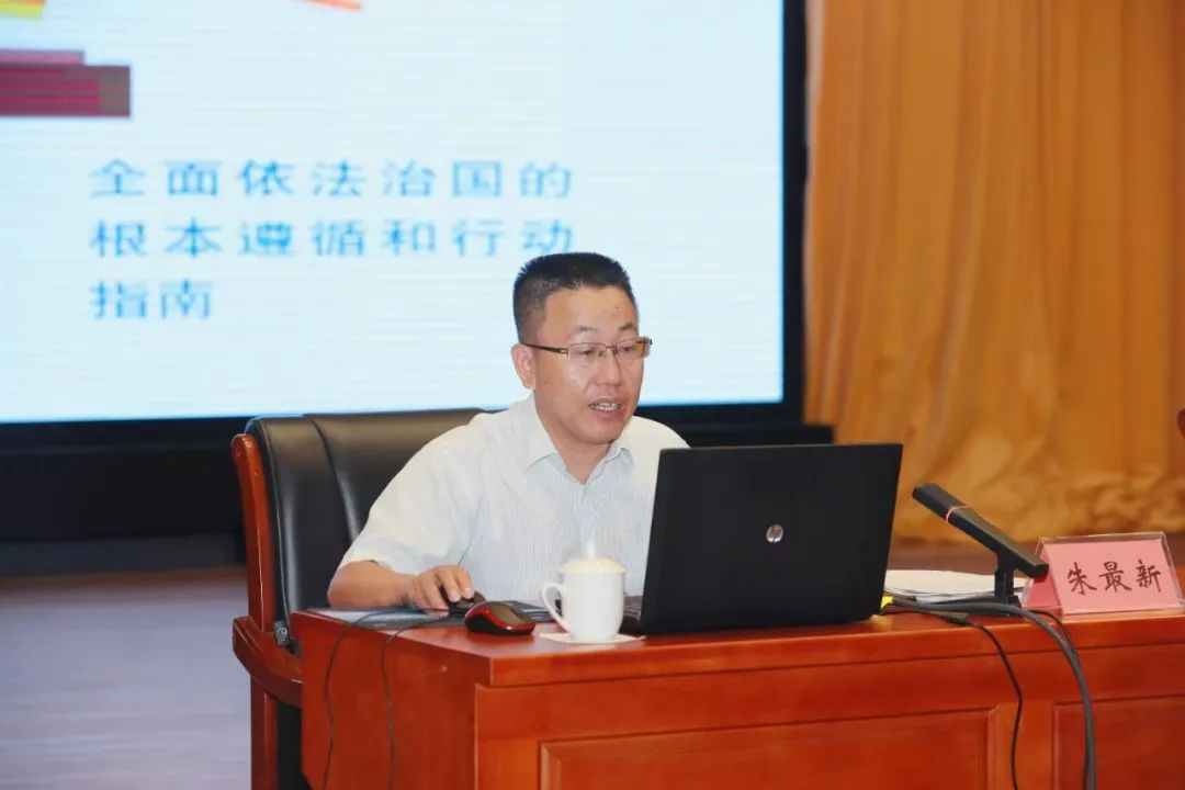为深入学习贯彻习近平法治思想和习近平总书记关于坚持在法治轨道上推进国家治理体系和治理能力现代化的重要论述。2022年9月22日,我院朱最新教授出席“百名法学家百场报告会”源城区委理论学习中心组专场暨南粤法治报告会。报告会上,朱最新主任围绕“学习贯彻习近平法治思想,推进市域社会治理现代化”这一主题,从以人民为中心、依宪治国、重大改革于法有据等方面,全面、精准、生动地讲解如何推进市域社会治理现代化。报告内容丰富、系统透彻,对进一步学习宣传贯彻习近平法治思想,推动市域社会治理现代化再上新台阶、打造全域现代治理样板,具有重要指导意义和启发作用。