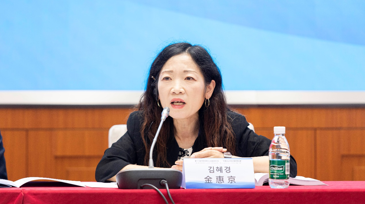 金成龙会长在闭幕式上对本次研讨会的成功举办表示高度肯定,并感谢与会各方的积极参与。他向来自中韩两国的所有专家学者,感谢他们在主持、做报告、在讨论当中所做出的努力;感谢广外的领导以及工作者,为大会做了非常充足的准备和细致的安排;也要感谢由于个人原因已经提交了论文,但是今天未能到现场的各位专家学者!他表示,资料集上的论文都是非常珍贵的资料,希望我们会后把这个资料集进一步完善,作为珍贵的资料进行保存。最后他提到,通过今天的会议可以进行一个反思,对于我们韩国自己的发展或者是对于整个制度的发展都有很好的借鉴,希望在接下来的研究当中能够找到改善、解决这些问题很好的平衡点。